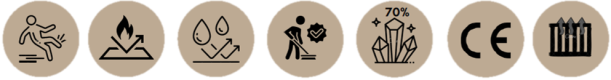Nuestras nuevas placas antideslizantes de gran formato con su innovador sistema waterproof están compuestas con una carga mineral del 70% que garantiza una resistencia excepcional. Fabricadas con materiales de primera calidad, aseguran durabilidad y fiabilidad a la par que una resistencia superior contra impactos. Además, su naturaleza ignífuga e hidrófuga las convierte en una elección segura y duradera para cualquier espacio, facilitando su mantenimiento y limpieza.